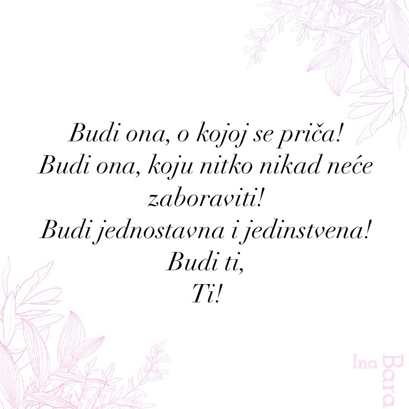 Budi svoja, ne slušaj druge, sama za sebe znaš najbolje! Instagram ina_bara_